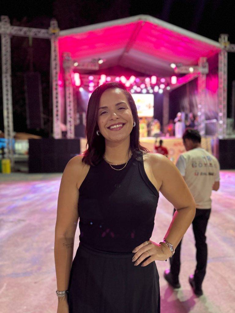 Em seguida, a valorização dos artistas locais tomou o palco com Maurício Menezes, que rapidamente atraiu dezenas de pessoas para perto da estrutura central. Ao som do arrocha e de outros gêneros populares, o cantor promoveu um clima de proximidade e participação, transformando a praça em um ambiente descontraído e festivo. O ritmo mudou com a entrada das meninas da Yayá Muxima, grupo feminino de percussão que trouxe o peso e a energia dos tambores afro-baianos. Com influências de Olodum, Timbalada e blocos afro de Salvador, o coletivo não apenas apresentou música, mas também compartilhou a força de seu projeto cultural, que atua no empoderamento artístico de meninas e jovens mulheres através da percussão e do resgate identitário. Encerrando a noite, o cantor Canindé reuniu uma multidão em frente ao palco, promovendo um final vibrante e compartilhado, com muita música, dança e celebração coletiva.