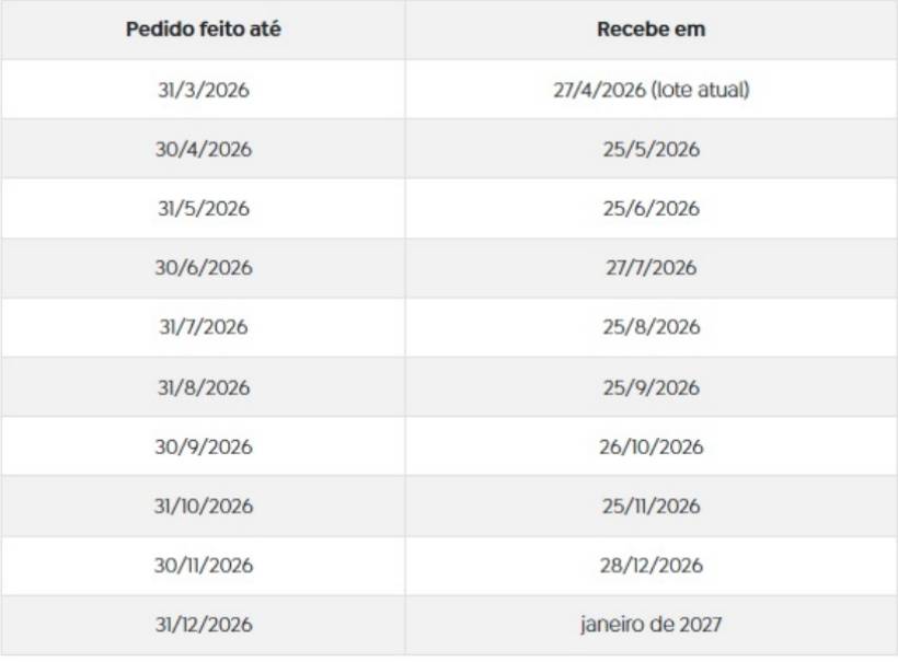 O pagamento depende da data em que o pedido foi feito.
