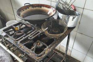 “Foram identificadas diversas irregularidades, como equipamentos enferrujados, paredes apresentando umidade, sujeira acumulada nas paredes e no chão, panelas em condições inadequadas de higiene, além de infiltrações, evidenciando graves falhas nas condições higiênico-sanitárias”, pontuou a chefe da Vigilância Sanitária, Thaís Marques.