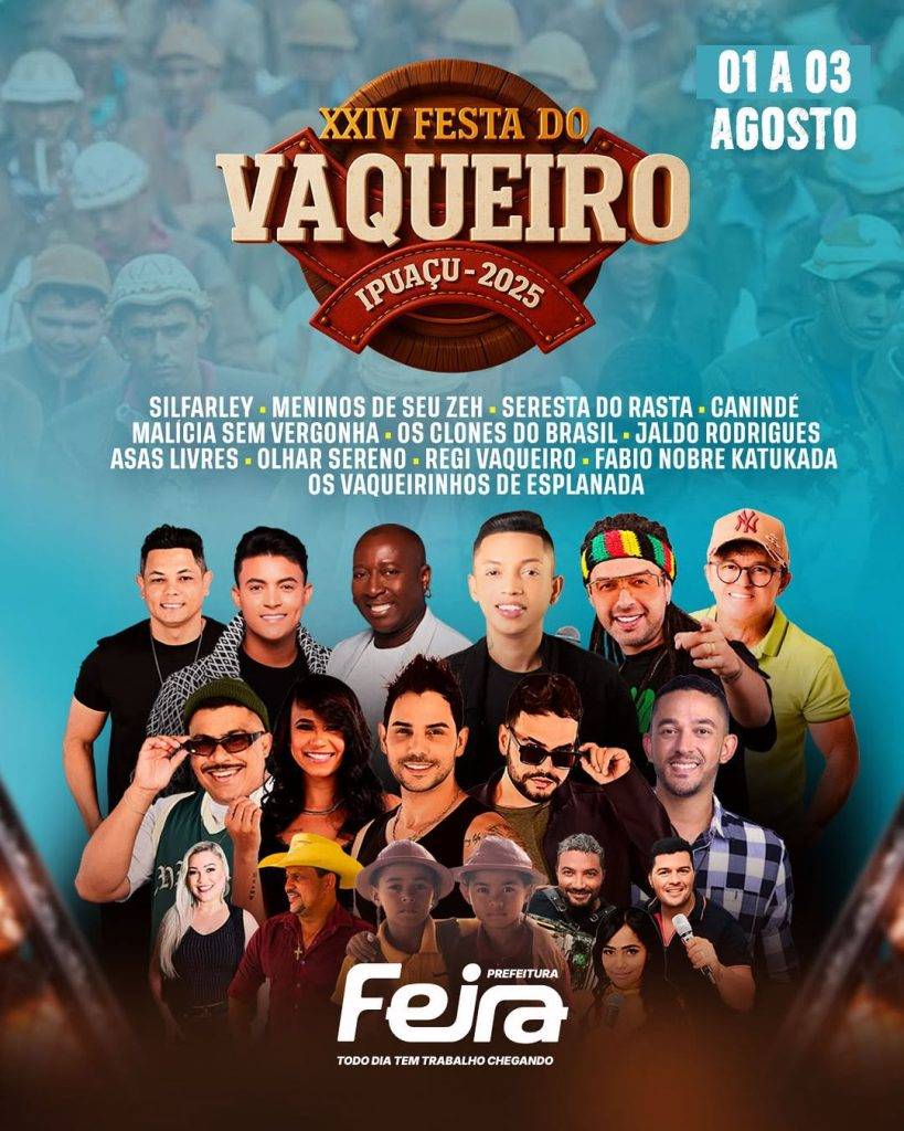 Entre os dias 1 e 3 de agosto, o distrito de Governador João Durval Carneiro, conhecido popularmente como Ipuaçu, será realizado uma das festas mais tradicionais do interior baiano: a Festa do Vaqueiro. Em sua 24ª edição, o evento celebra a cultura sertaneja e reúne milhares de pessoas em torno da fé, da música e da valorização dos vaqueiros da região.