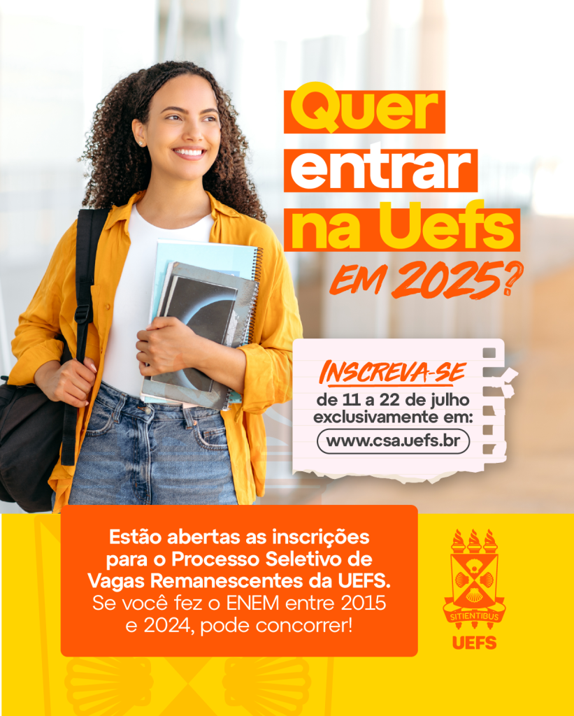 - A UEFS lançou o Processo Seletivo para Vagas Remanescentes 2025, com ingresso previsto para o semestre 2025.2.