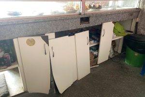 - Inspeção encontrou graves irregularidades: falta de higiene, infiltrações, sujeira, armários danificados e alimentos expostos.